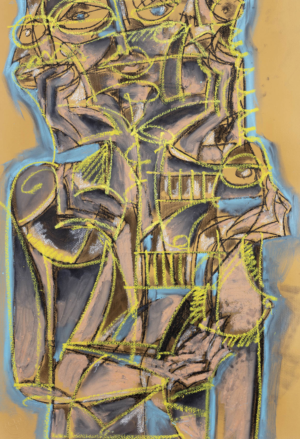 Acrylic paint, charcoal, oil pastel, chalk pastel on Fabriano paper