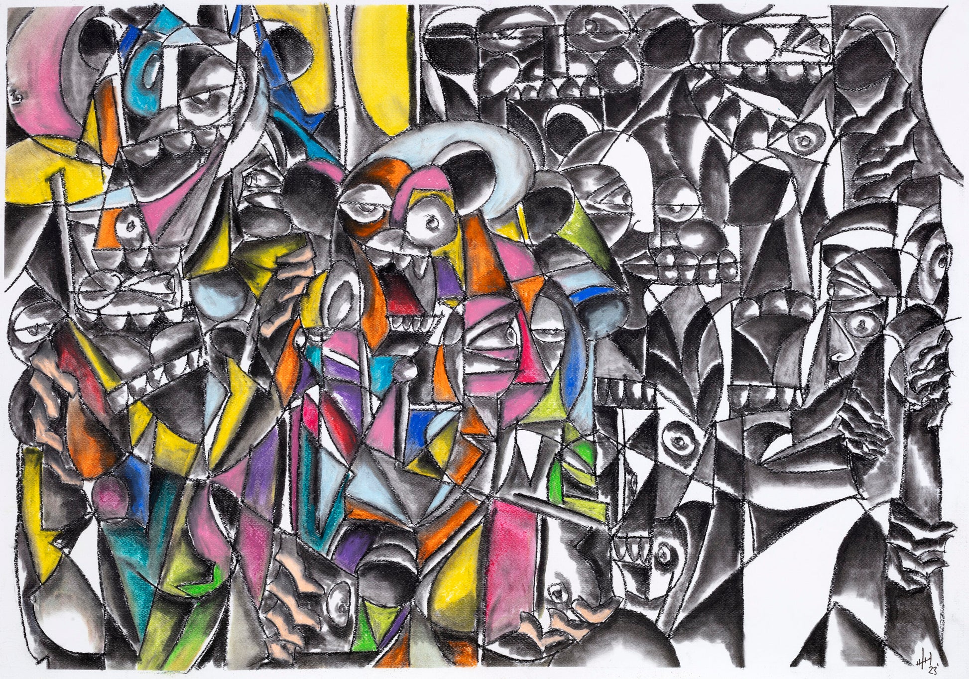 Charcoal, oil pastel and acrylic paint on Fabriano paper