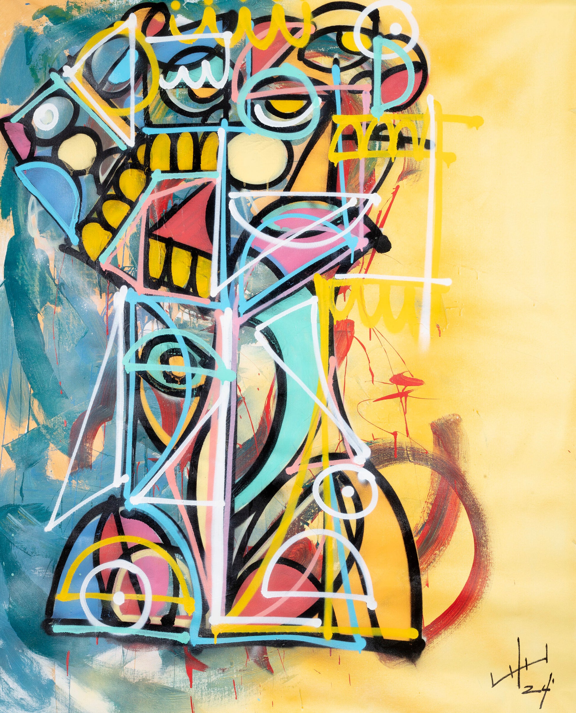 Spray paint, acrylic paint on canvas